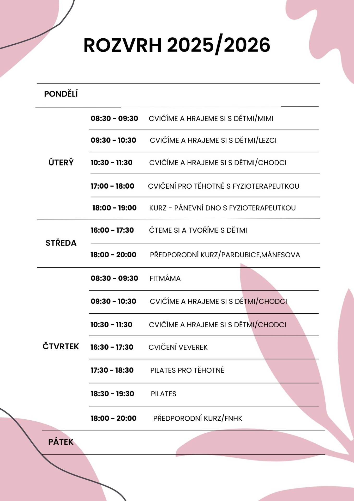 Rozvrh 2025/2026